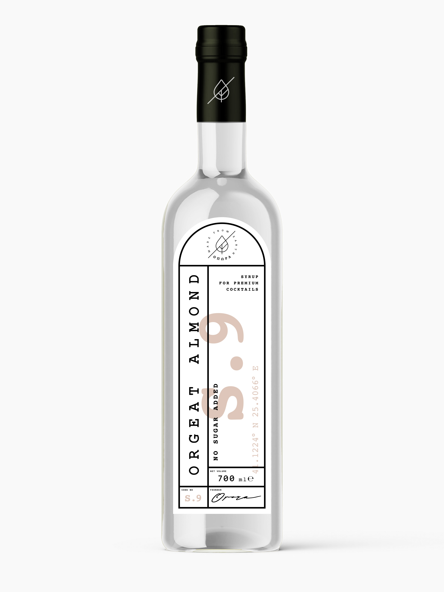 Καινοτόμο σιρόπι orgeat χωρίς ζάχαρη: Παρασκευάζεται χωρίς προσθήκη ζάχαρης, με συμπυκνωμένο χυμό σταφυλιού ως φυσικό γλυκαντικό, προσφέροντας φυσική γλυκύτητα με σύγχρονη, καινοτόμο προσέγγιση.